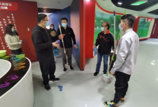 此次志愿服務(wù)活動一經(jīng)提出,第二黨支部的全體黨員10人均積極踴躍報(bào)名參加。中心黨委成員何家振、林玉同志攜帶掃把、抹布等清掃工具帶頭勞動,并呼吁大家認(rèn)真仔細(xì)完成此次志愿服務(wù)清掃活動。活動開展過程中,大家分工明確、井然有序,協(xié)力清掃了約500平方米的公共空間。每位黨員同志既為美化中心環(huán)境貢獻(xiàn)了自己的一份力量,也希望能夠號召更多的同事加入行動,共同維護(hù)中心辦公環(huán)境的清潔衛(wèi)生。當(dāng)大家看到自己清掃的成果,也頗有成就感,紛紛感嘆此次志愿服務(wù)活動很有意義。