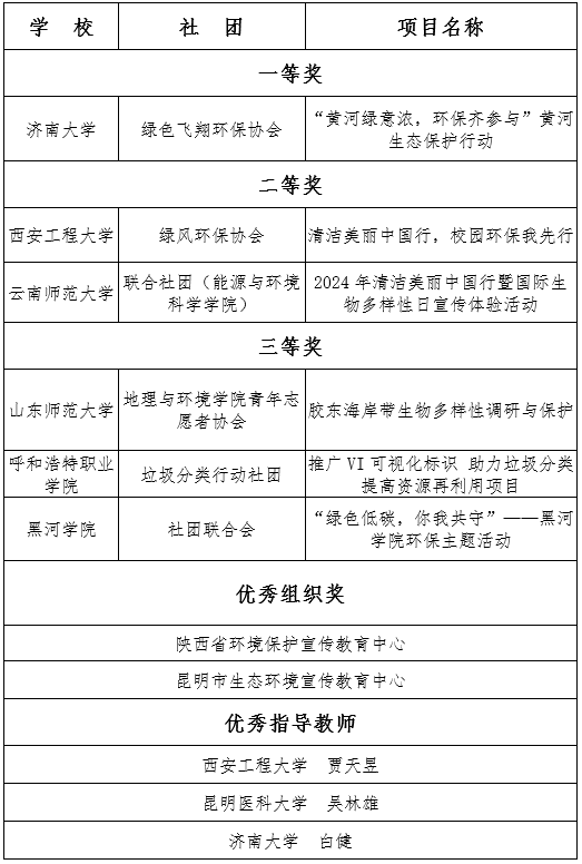 2024“清潔美麗中國行”全國高校小額資助項目獲獎名單