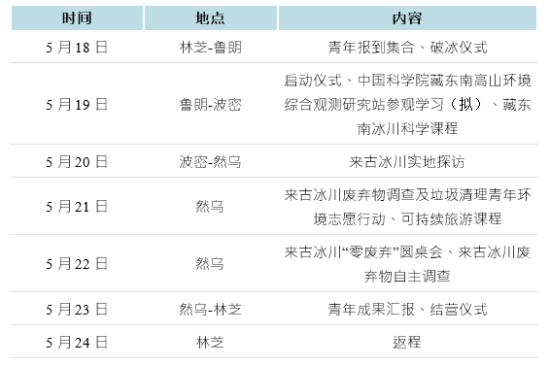 活動成果將以青年代表撰寫、提交《來古冰川零廢棄景區(qū)建設試點方案》(擬)和《冰川零廢棄場景指南》(擬)或其他創(chuàng)新方案的形式呈現(xiàn)。